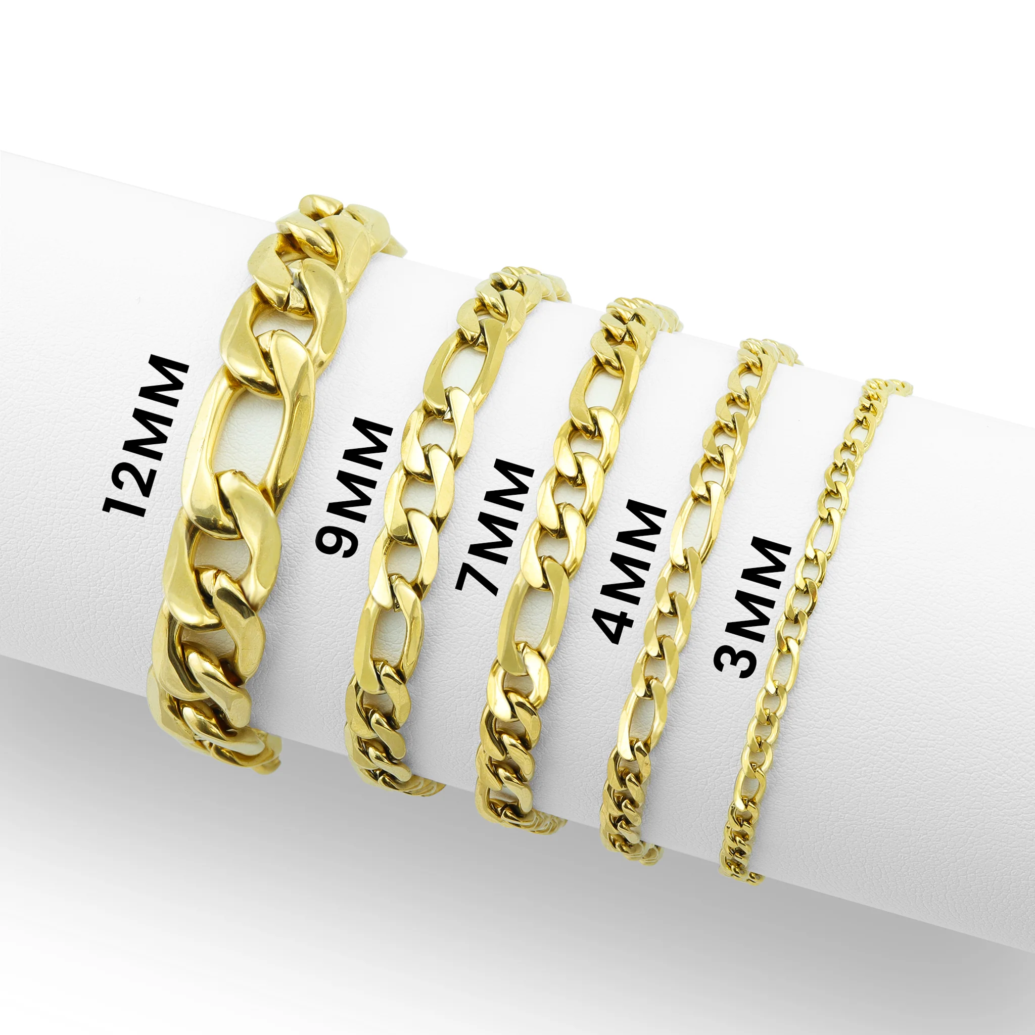 Stainles Steel 18K Guld Pläterad Figaro, Armband(97)